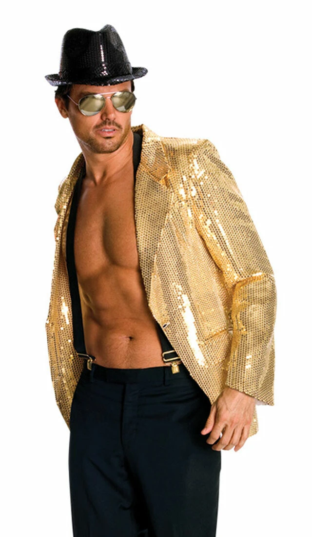 This deluxe men’s jacket is a perfect way to capture the classic vibes of the roaring 1920s! Make a bold statement and add a spark of personality to your wardrobe with this iconic sequined jacket.