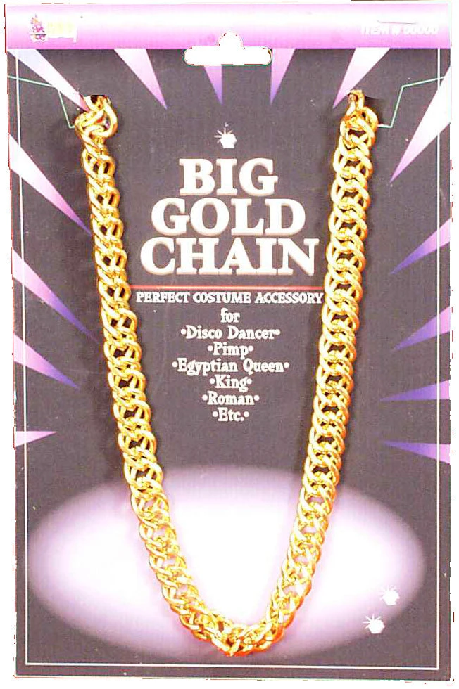 This big gold chain is the perfect finishing touch to a variety of costumes! Great for pimps, disco dancers, or hip hop stars. Just a little something to show your riches.