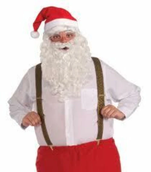 Tired of the same old Santa belts? Try out these festive suspenders to keep your Santa suit on Santa.