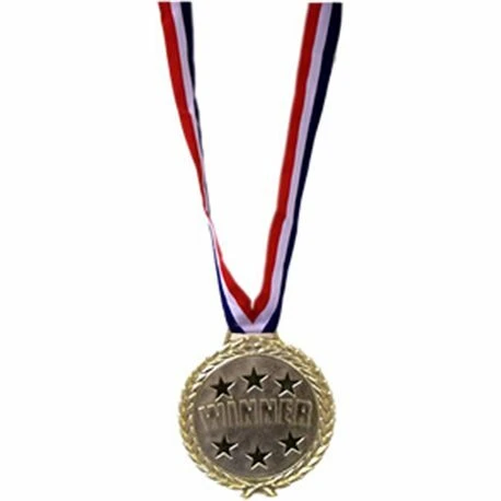 You are a Winner! This fake gold medal is perfect for Halloween, friendly competitions, or just to make yourself feel good. Plastic medal with knit band/necklace.
