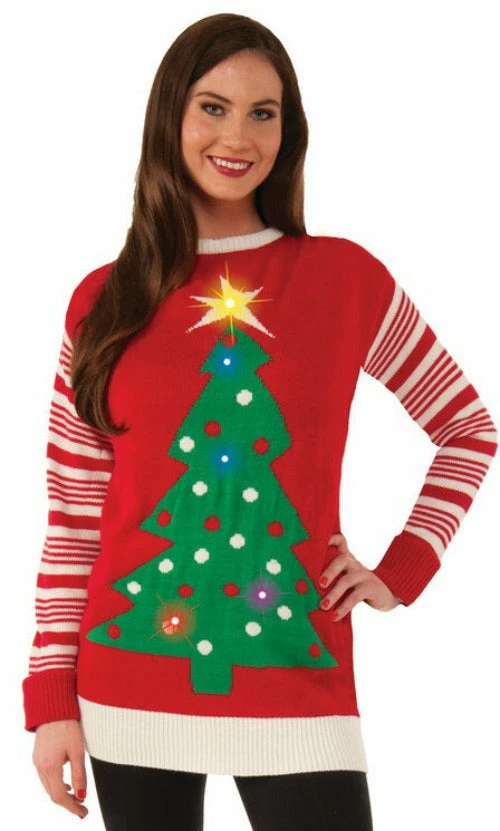 Sweater has two settings Flash/On. ( 3 – AA Batteries Required)Â