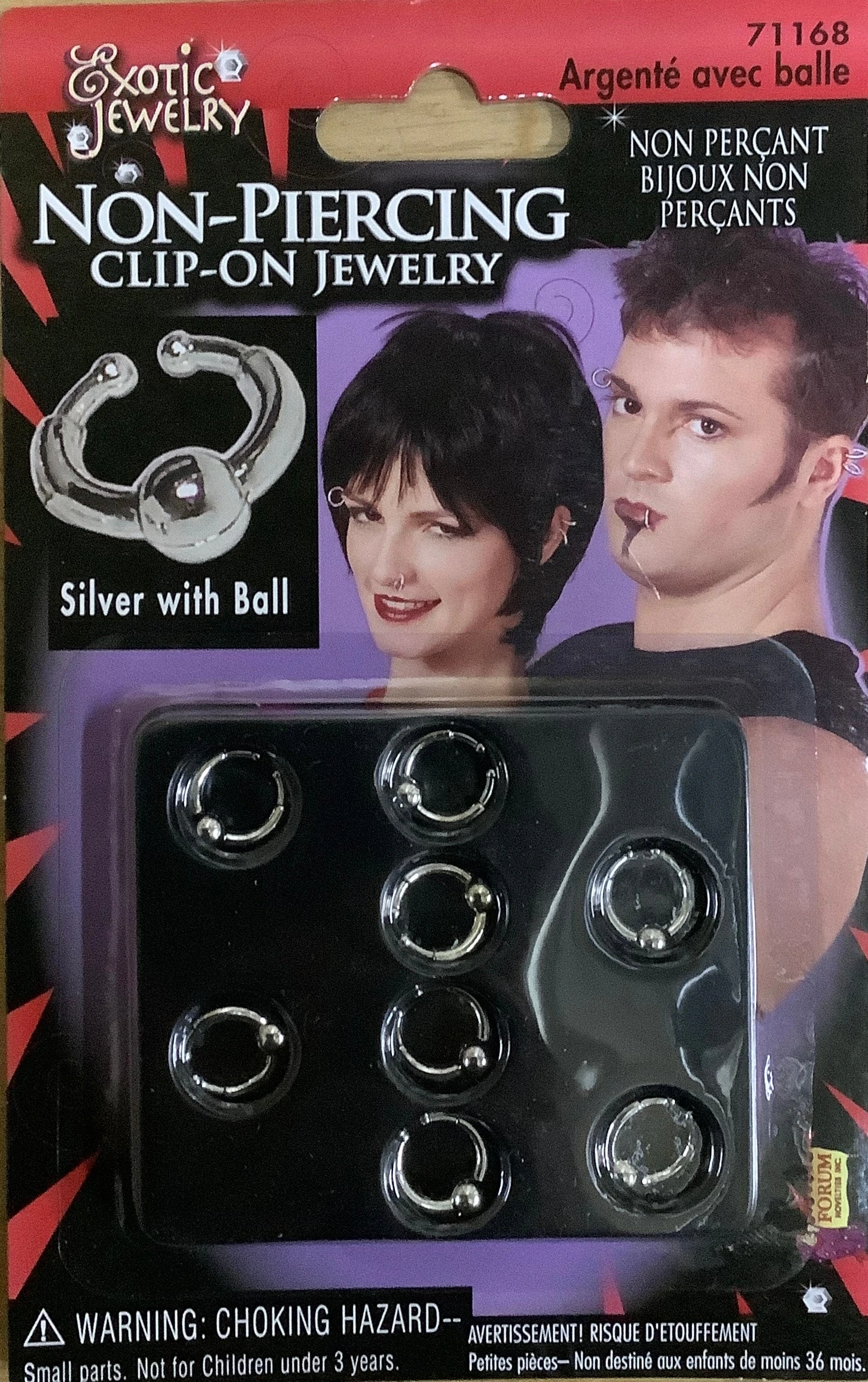 Need to punk up an costume or just see what a piercing would look like? Then these clip on rings are for you! Simply clip on to an eyebrow, nose, lip, and easy to remove and reuse.