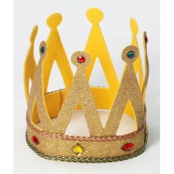 A perfect crown for any king, prince or member of your Royal Court! Flexible tall gold glittery crown is easy to wear for adults and has a velcro for the perfect fit!