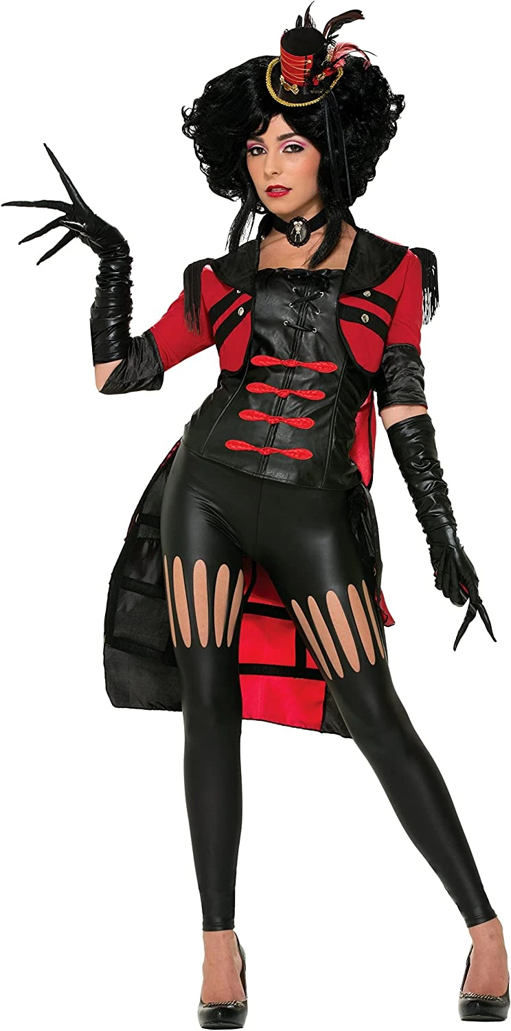Includes tailcoat jacket, corset with attached birdcage bustle, and leggings.