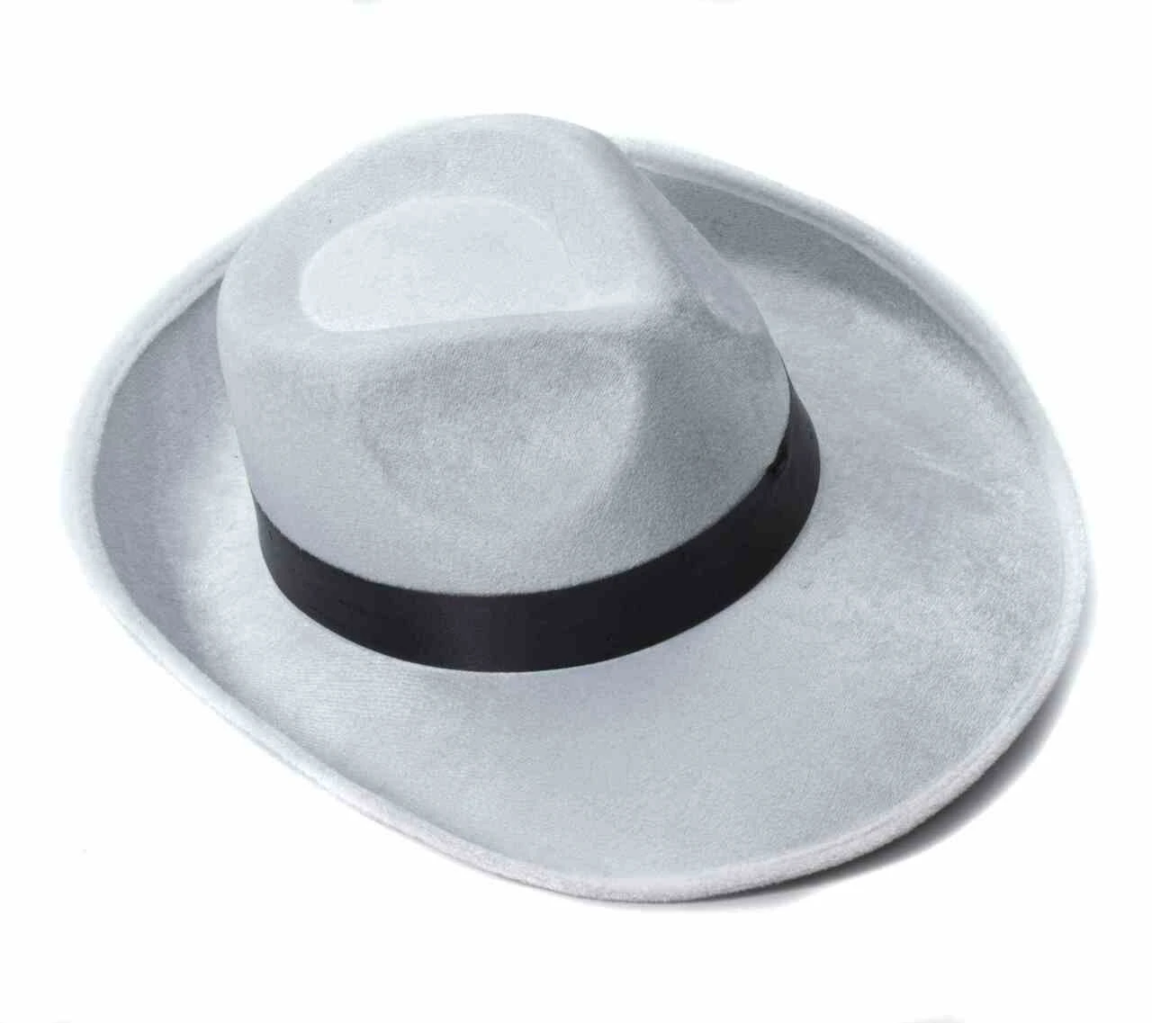 Be the toughest looking crime boss around with this White Fedora with Black Band!