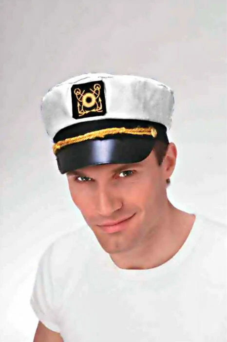 Complete you nautical themed costume with this Yacht Hat. This official ship captain’s hat features an embroidered gold nautical emblem on the front with a shiny black brim and gold braided rope detail.